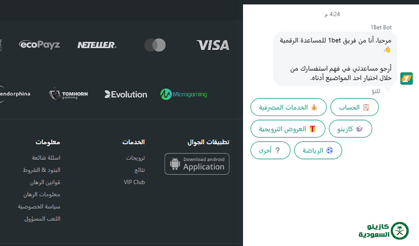 فريق الدعم مُتجاوب ويُقدم خدمات احترافية. كما يوفر كازينو 1Bet تطبيقًا للهواتف المحمولة يتيح لك لعب ألعابك المفضلة في أي وقت.